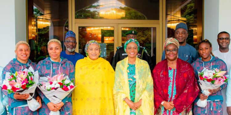 The First Lady received the players with the wife of the Vice President Hajia Nana Shettima and wife of the Senate President Mrs Ekaette Akpabio