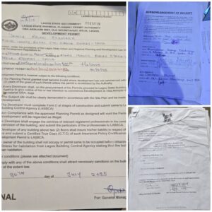 Hence, he sought and got approval from the Lagos State Physical Planning Permit Authority which was granted on 30 July, 2025. The approval stated clearly that Olonade has been given approval to erect 2-floor, four units residential buildings on the land.